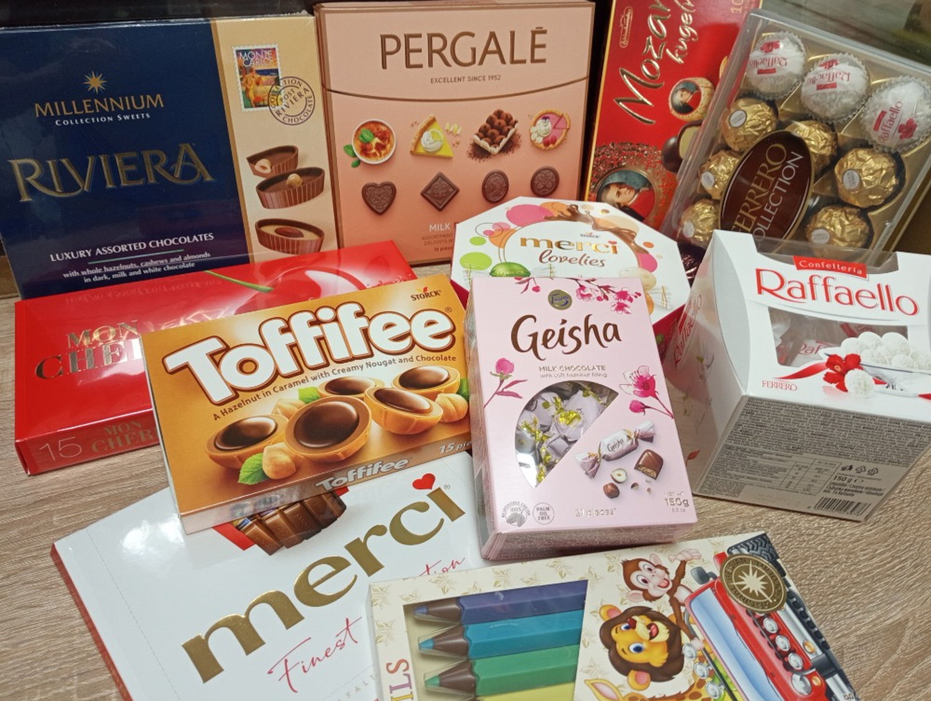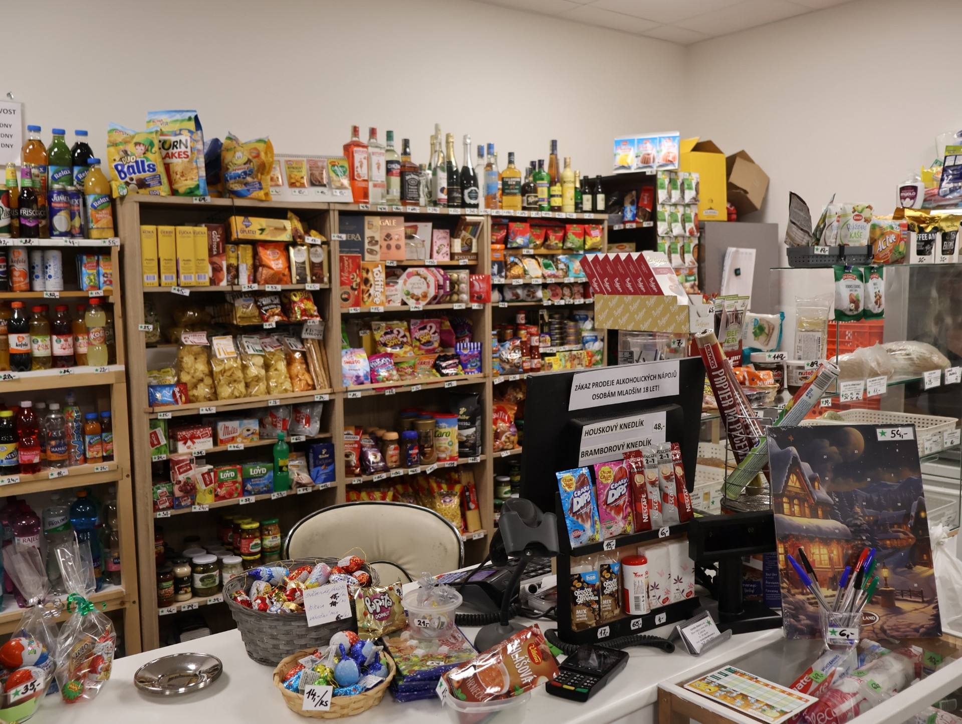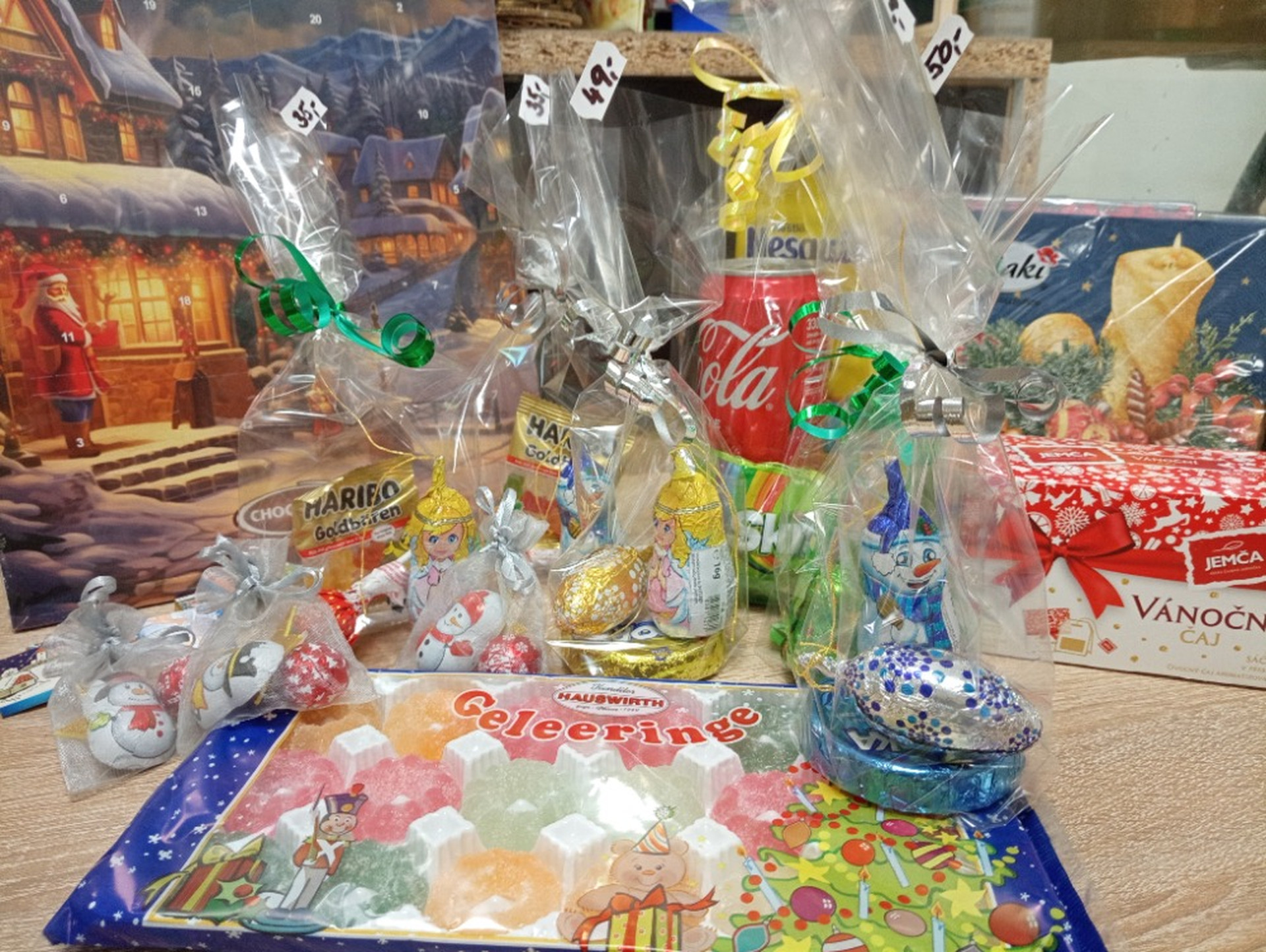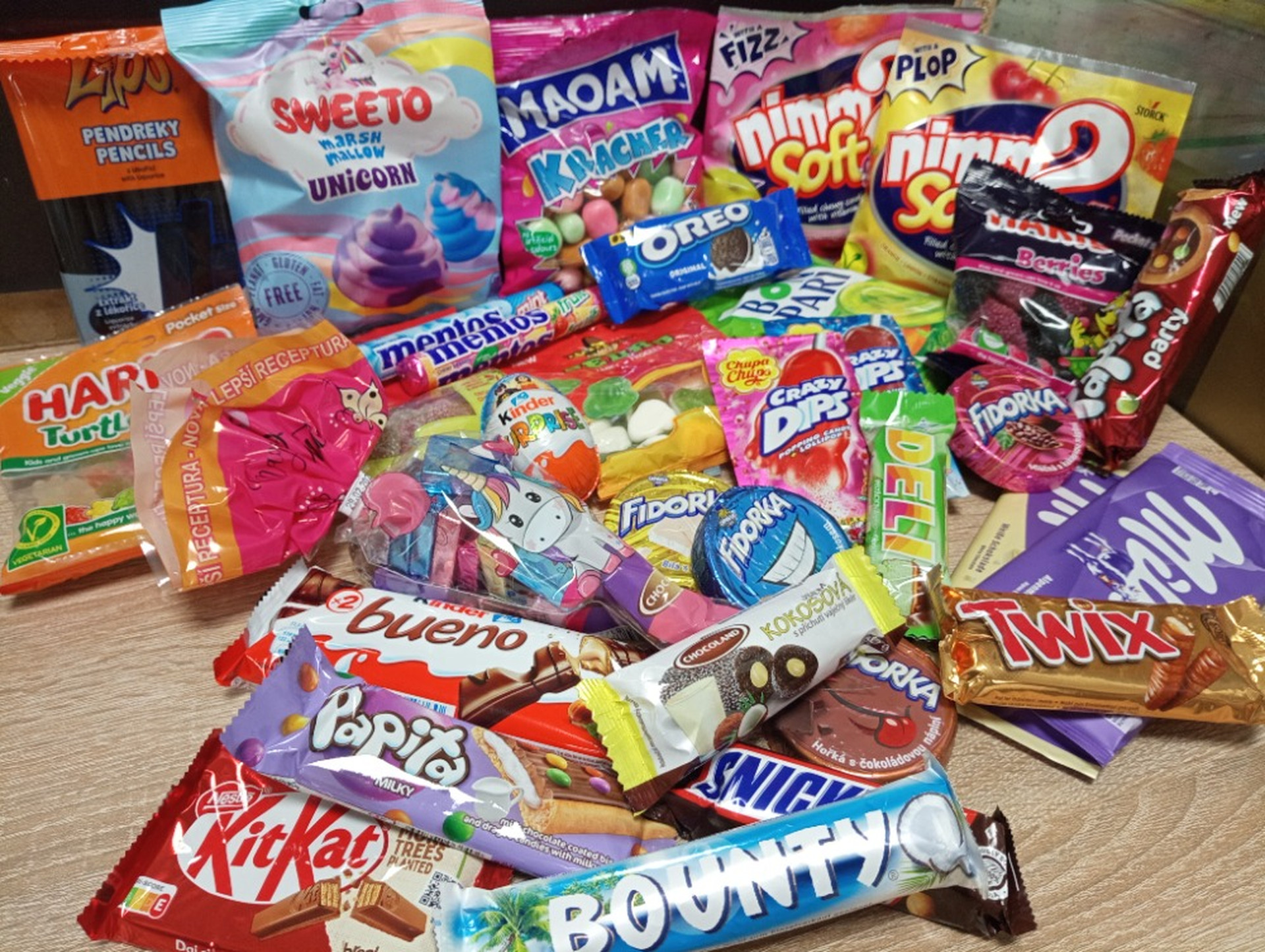 Ze sladkostí můžeme nabídnout různé bonbony, lízátka, sušenky, oplatky, bonboniéry, nanuky…